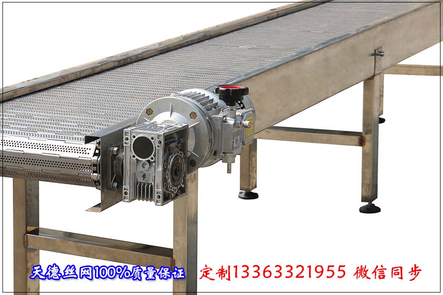 河北天德絲網制品有限公司生產電器鏈板輸送機、輸送鏈板、金屬輸送帶、板式輸送帶、平板輸送帶:13363321955